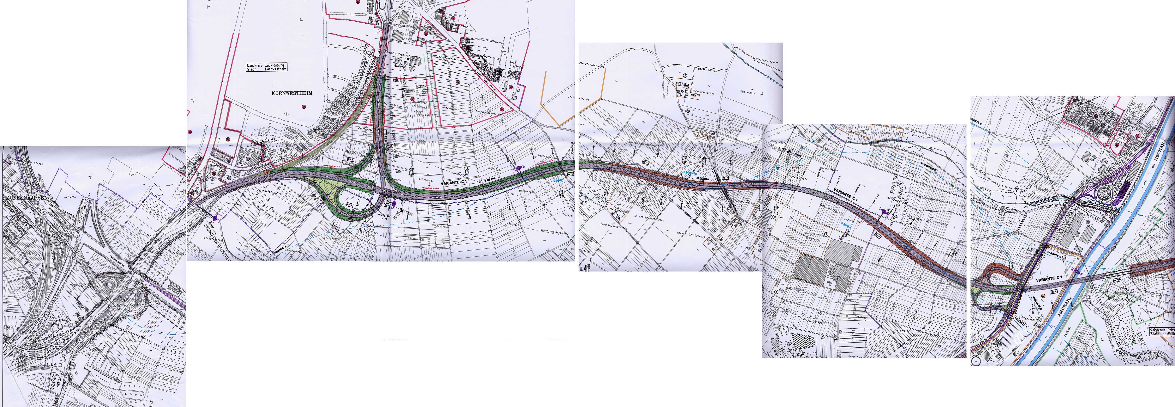 Untersucht wurden 9 Varianten: A, B, C, D, E D1, CA1, CA2, C1. Der Erläuterungsbericht legt sich weitgehend auf die Variante "C1" fest, die näher bei Kornwestheim verläuft als die ursprünglich einmal geplante 4.1 Variante (die hier der Variante "A" entspricht. Diese "A" Variante wird von den Planern verworfen, da die Verknüpfung mit der B27 / B27a / B10 nicht leistungsfähig genug und die Attraktivität für den Verkehr geringer als bei den anderen Varianten ist (Umweg). Die ursprünglich von Gutachtern (Teilraumuntersuchung) empfohlene Variante 4.3 (Ausbau einiger Engpässe bei bestehenden Straßen sowie neue Neckarbrücke bei Aldingen) wurde erst gar nicht untersucht.