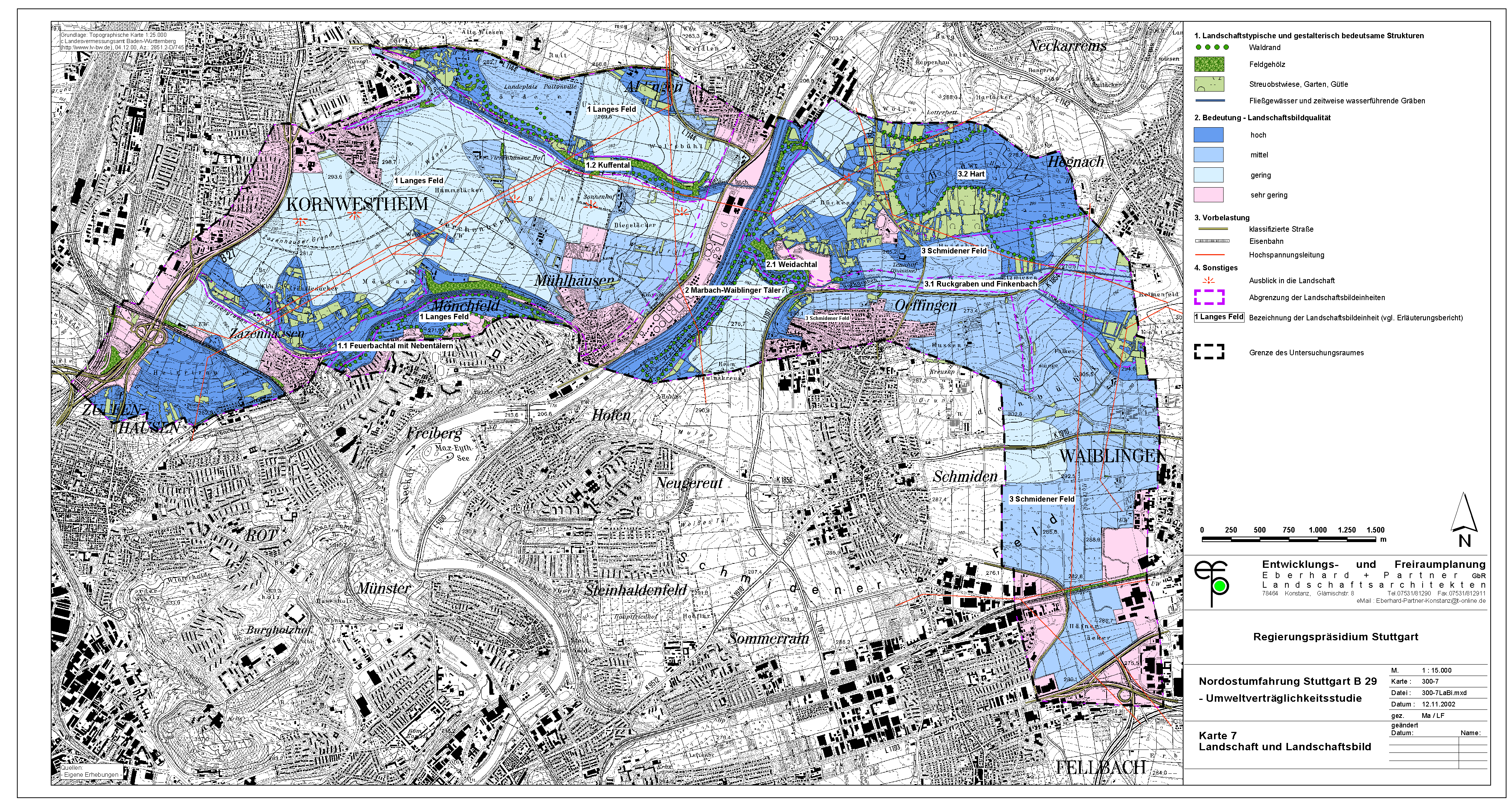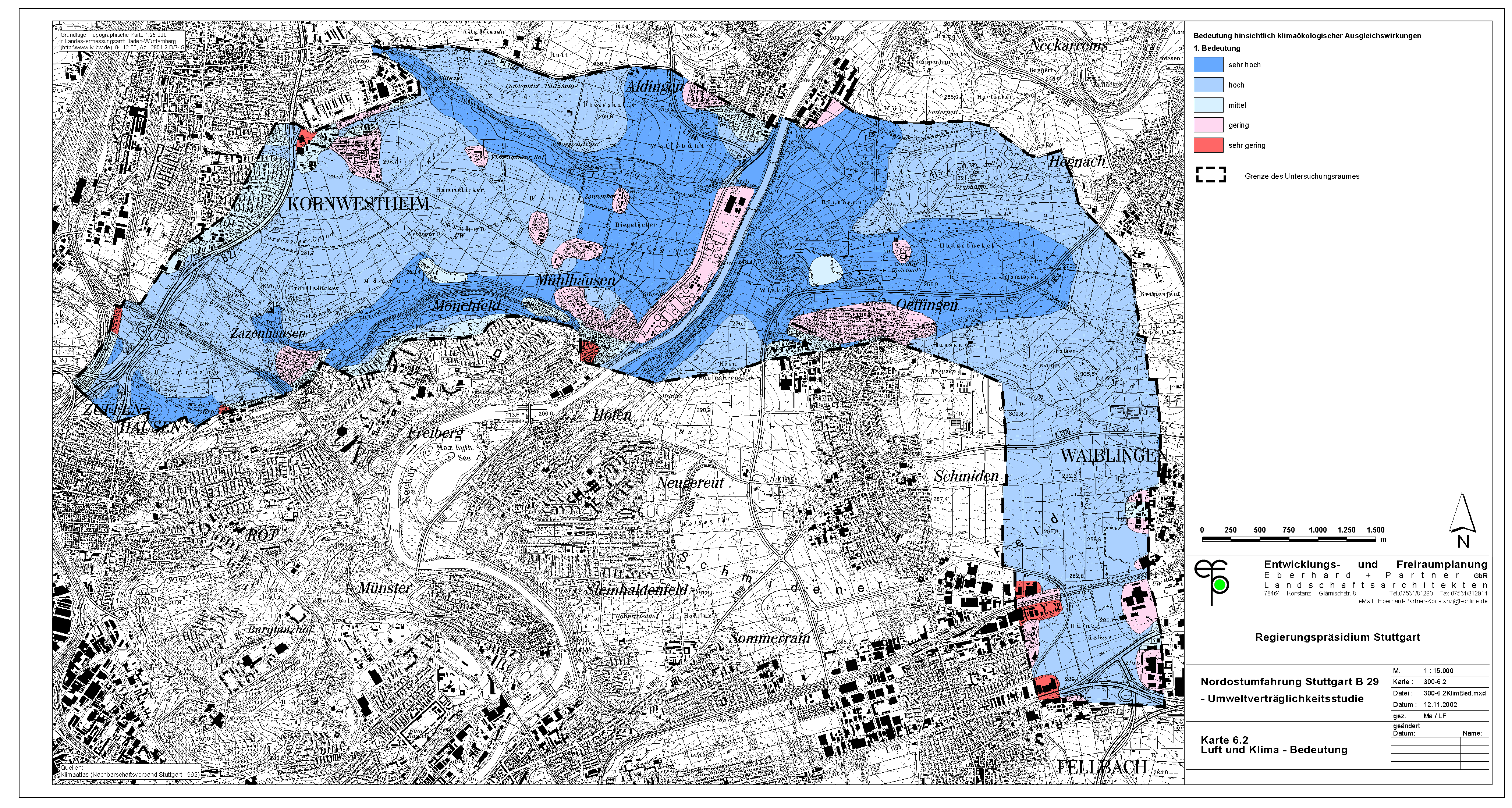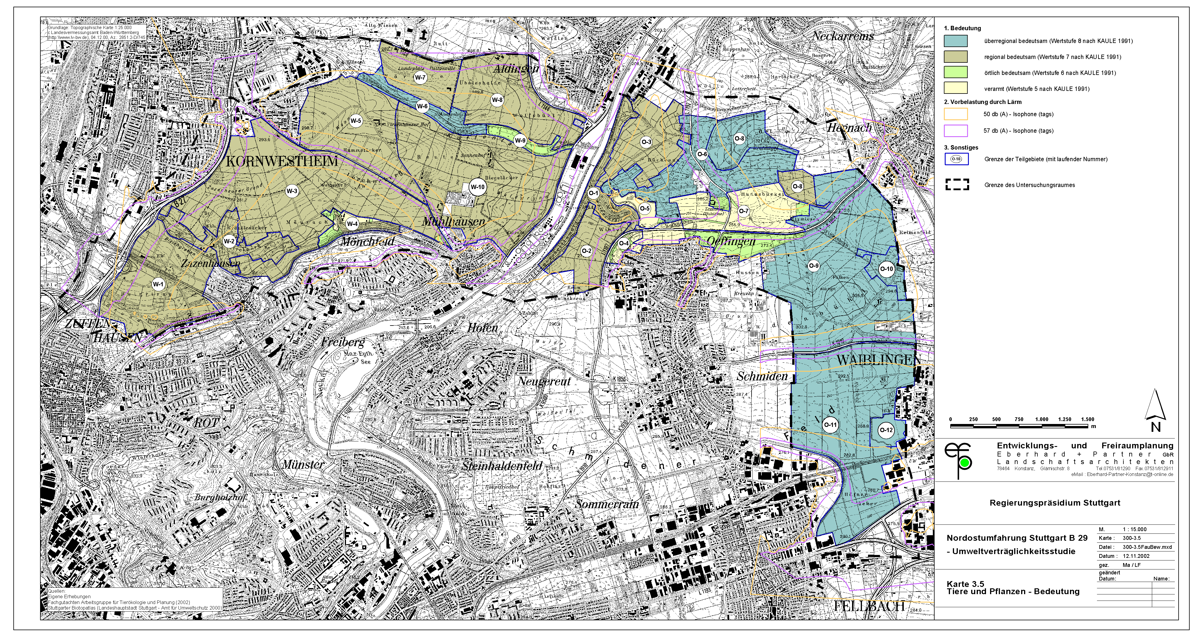 Umso mehr muss überraschen, daß die Stadt Waiblingen ausgerechnet durch die wertvollsten Flächen die sog. "Westumfahrung Waiblingen" baut. Offensichtlich hat die Stadt Waiblingen die Wertigkeit dieser Flächen nicht richtig erkannt und hat somit auch nicht alle notwendigen Belange in die Abwägung einstellen können. Die Abwägung ist demnach fehlerhaft. Was auch kein Wunder ist, hat sich die Stadt Waiblingen doch geweigert, eine Umweltverträglichkeitsstudie anzufertigen. Statt dessen hat sie - auch vor Gericht - behauptet, im Grünordnungsplan zur Westumfahrung seien alle Belange ausreichend untersucht. Daß dem nicht so ist, zeigt die jetzt vorliegende UVS zum Nord-Ost-Ring.