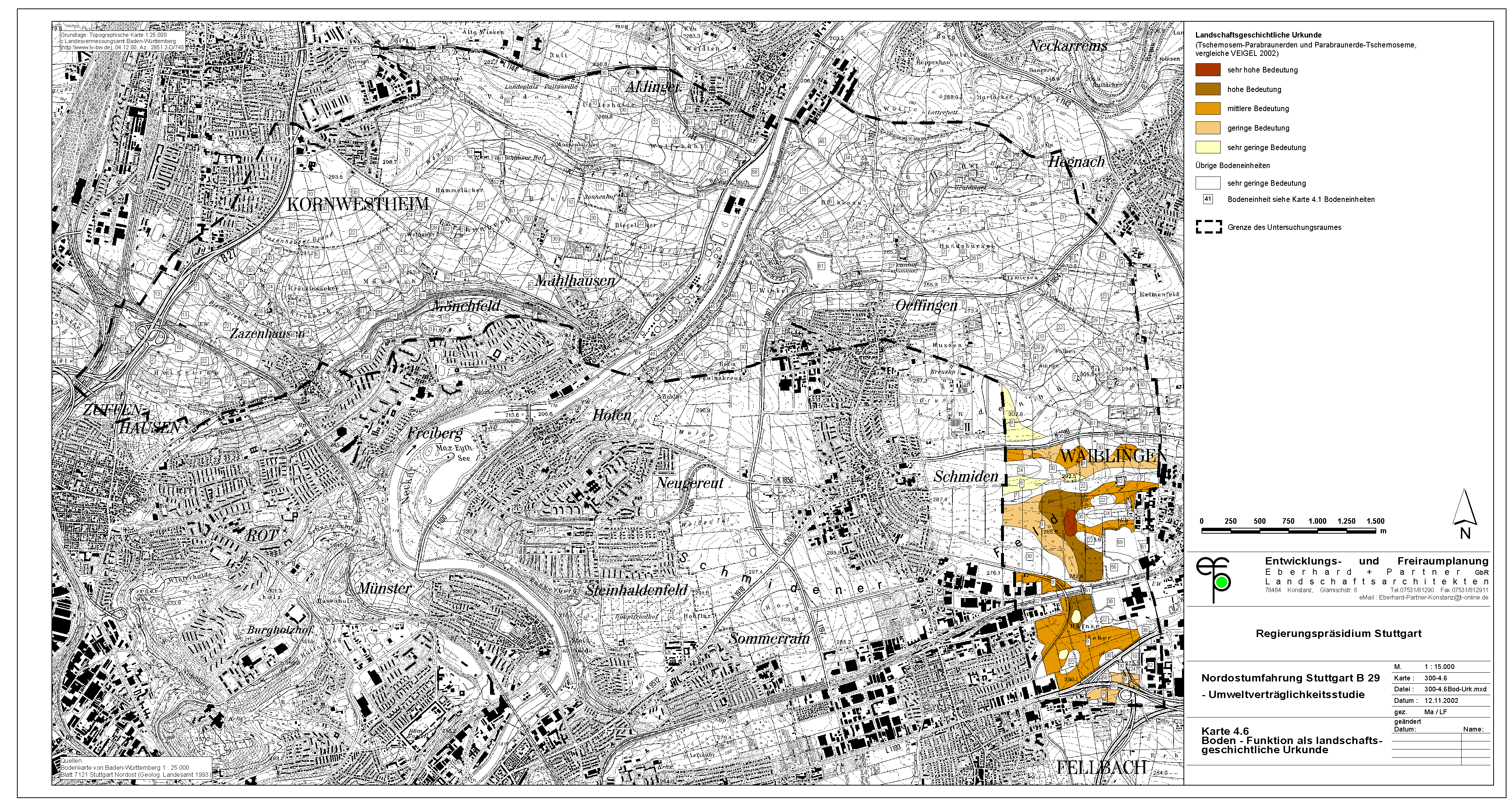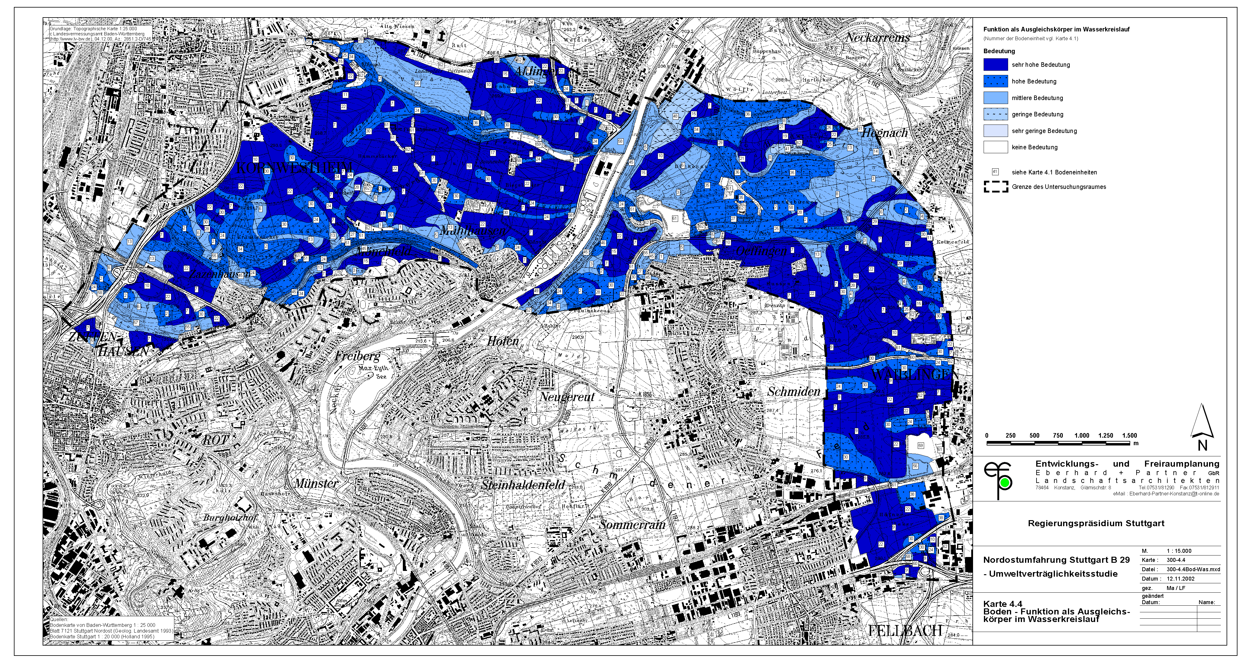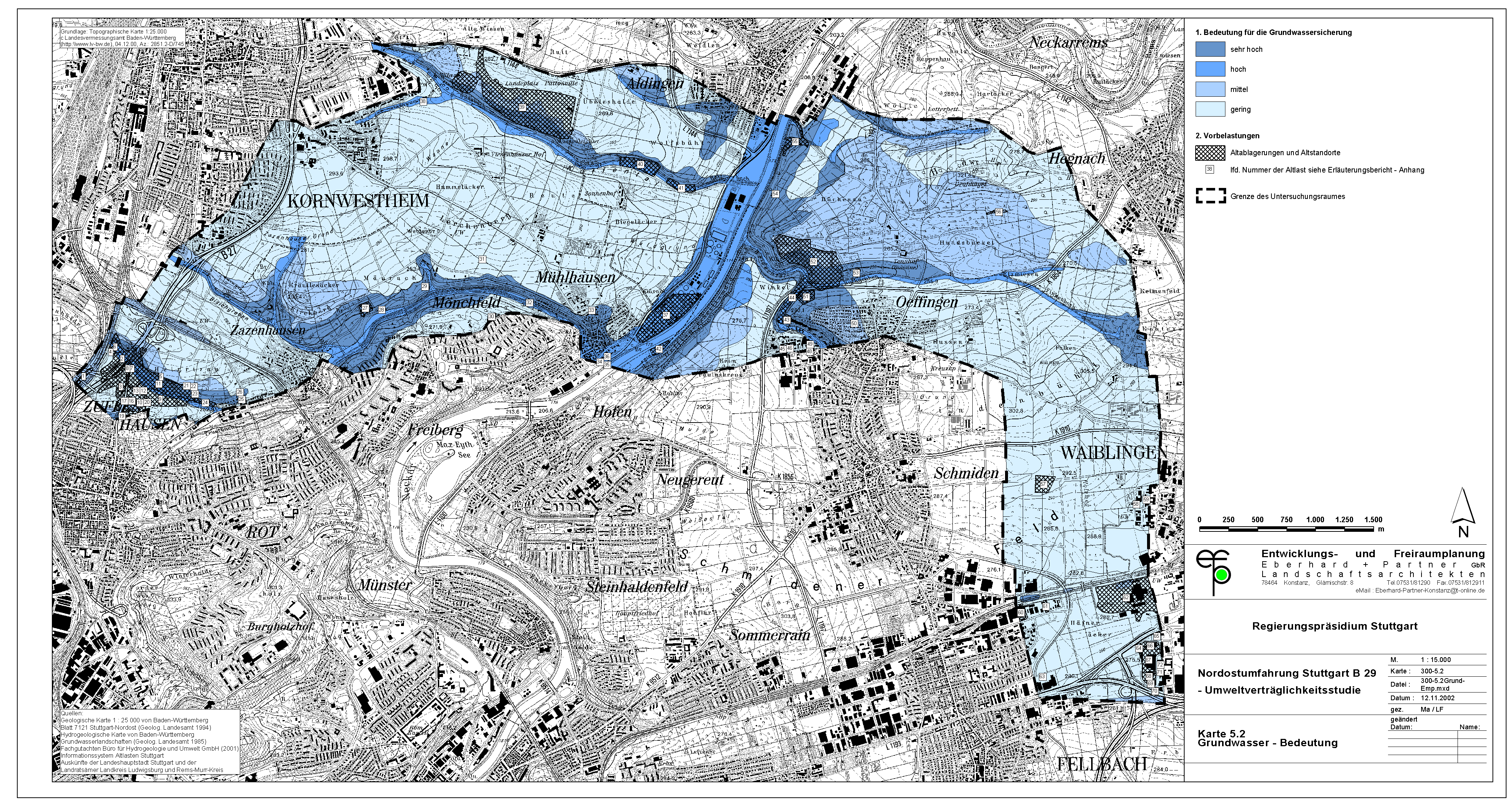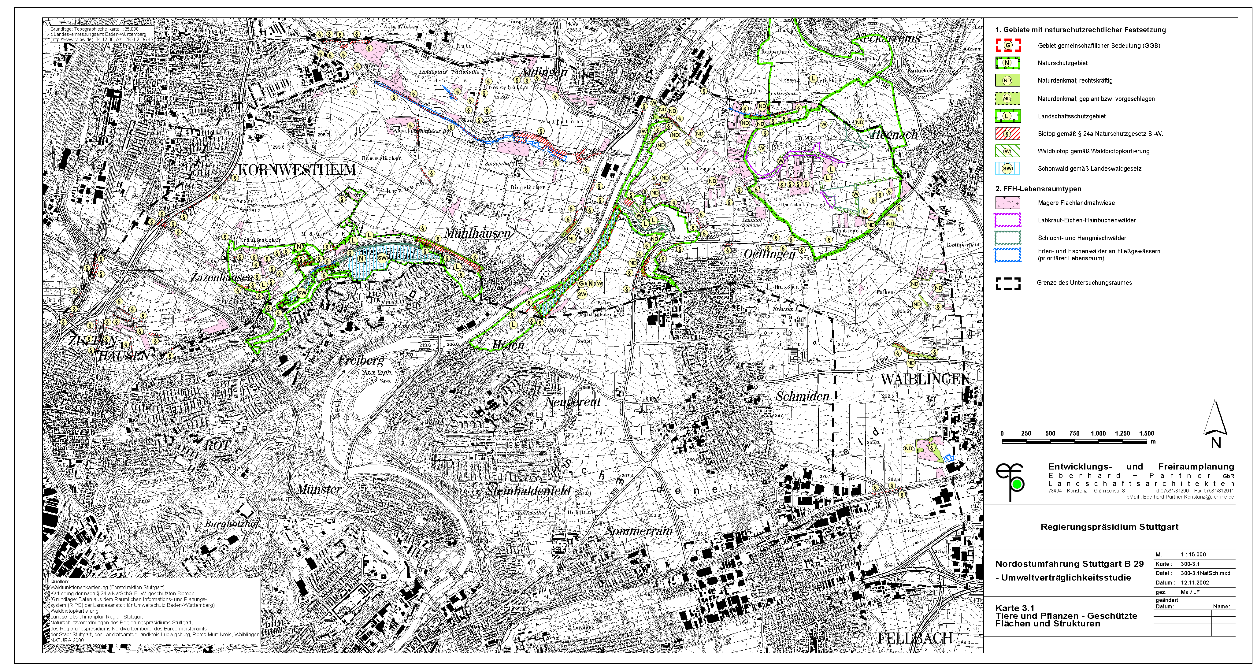 Umso mehr muss überraschen, daß die Stadt Waiblingen ausgerechnet durch die wertvollsten Flächen die sog. "Westumfahrung Waiblingen" baut. Offensichtlich hat die Stadt Waiblingen die Wertigkeit dieser Flächen nicht richtig erkannt und hat somit auch nicht alle notwendigen Belange in die Abwägung einstellen können. Die Abwägung ist demnach fehlerhaft. Was auch kein Wunder ist, hat sich die Stadt Waiblingen doch geweigert, eine Umweltverträglichkeitsstudie anzufertigen. Statt dessen hat sie - auch vor Gericht - behauptet, im Grünordnungsplan zur Westumfahrung seien alle Belange ausreichend untersucht. Daß dem nicht so ist, zeigt die jetzt vorliegende UVS zum Nord-Ost-Ring.