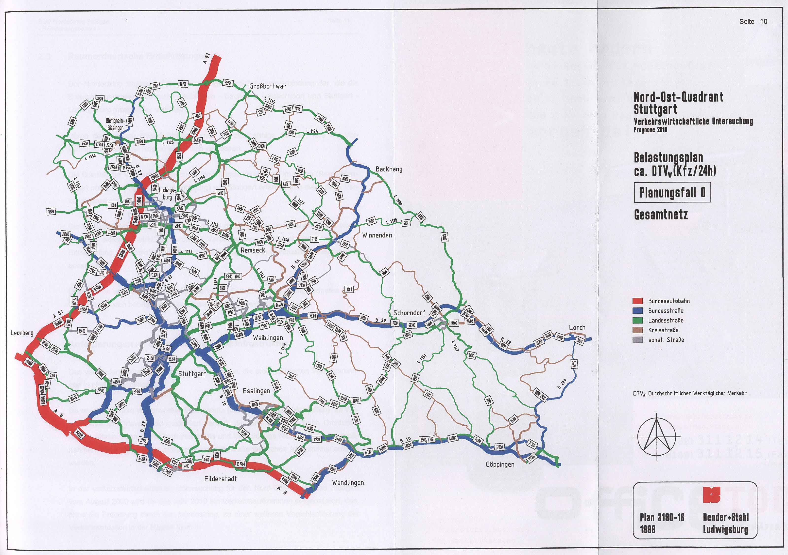 Der dritte Mangel des Verkehrsgutachtens besteht in der Annahme teilweise unrealistischer Verkehrsstärken bei der Nullvariante im Jahre 2010. Beispielsweise werden für die Mühlhäuser Straße in Stuttgart-Hofen über 34.000 Kraftfahrzeuge je Tag prognostiziert. Demgegenüber betrüge die Belastung mit Nord-Ost-Ring "nur" 18.000 Kfz/Tag. Mithin würde der Nord-Ost-Ring nach dem Verkehrsgutachten die Mühlhäuser Straße in Stuttgart-Hofen um 16.300 Kfz/Tag entlasten.