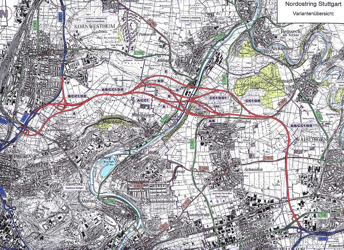 Im Jahr 2003 hat das Regierungspräsidium Stuttgart (RP) das Linienbestimmungsverfahren für den großen Nordostring Stuttgart durchgeführt. Ziel war es, eine mit allen Verfahrensbeteiligten abgestimmte Trassenführung fuer eine 4-streifige, autobahnähnliche Schnellstraße zwischen den Bundesstraßen B14 und B29 bei Waiblingen und den Bundesstraßen B10 und B27 bei Zuffenhausen festzulegen.